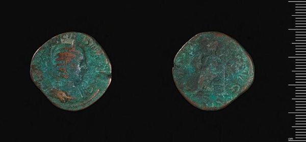 Editor: Here we have a Sestertius, featuring Septimius Severus. Looking at this coin, I’m struck by how much history it holds. How do you interpret its significance? Curator: This coin speaks volumes about power, representation, and the Roman Empire’s pervasive influence. Its creation and circulation was central to enforcing Severus's image, authority, and ultimately, his rule across diverse populations. What does it tell us about wealth inequality? Editor: That's fascinating. I never considered its role in reinforcing power dynamics. Thanks for illuminating that for me. Curator: My pleasure. Now, think about whose labor mined the metal.