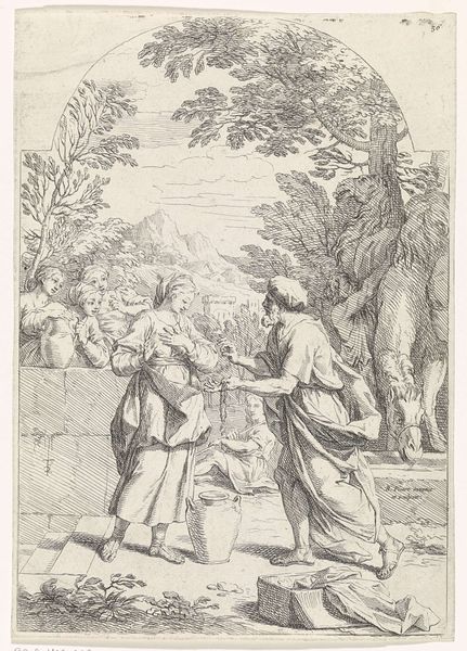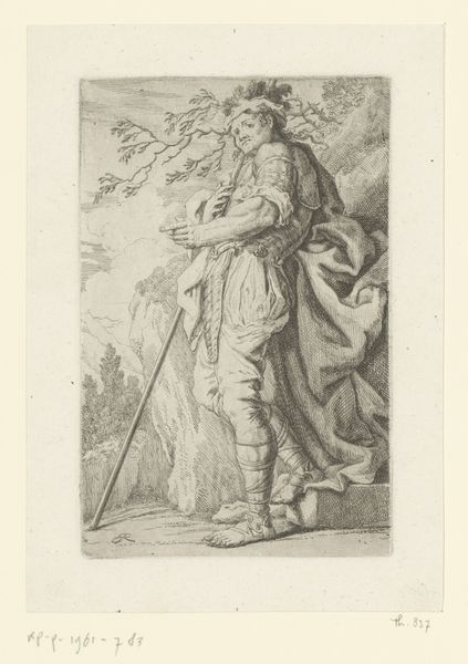 Jan Thomas created this print of a herderpaar, or shepherd couple, using etching techniques, sometime in the 17th century. In the Dutch Golden Age, idyllic images of rural life were popular among city dwellers. Artists often depicted shepherds and shepherdesses in idealized settings, far removed from the realities of agricultural labor. The figures' elaborate clothing and affected poses contrast with the common perception of the working class. This romanticized view of rural life served to reinforce social hierarchies. By studying prints like these in the Rijksmuseum's collection and by researching the social and economic conditions of 17th-century Netherlands, we can gain a better understanding of how art both reflected and shaped the values of its time.