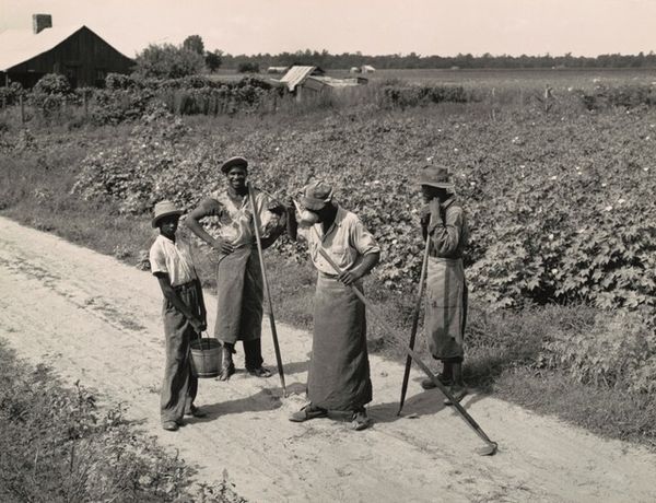 Dorothea Lange made this photograph near Bryan, Texas. It shows a Black sharecropper holding a piece of wood to his mouth. The composition and tone are so stark, so raw, you almost feel like you’re there in the Brazos riverbottoms with him. Lange uses light and shadow to emphasize the texture of the wood, the weathered clothing, and the man’s face. The lines of the barbed wire fence cut across the frame, creating a sense of confinement. But look at how the man’s gaze is directed upwards, towards the sky. There’s a sense of dignity and resilience in his posture, despite the harshness of his circumstances. I find myself drawn to the way the light catches on the rough bark of the fence post. It reminds me of the way we cling to what’s solid and enduring in a world that often feels precarious. Like the work of Walker Evans, Lange's contemporary, this is an image that invites contemplation about the human condition, but does so with remarkable grace.