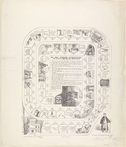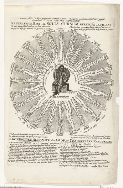 Curator: The Amphiteatrum Sapientiae Aeternae's print of "The Alchemist's Laboratory", dating from around 1595-1609, demonstrates Mannerism tendencies and was created using etching. Look at how much text is embedded. It looks less like an image than some kind of bizarre instructional manual. Editor: It's so busy, isn't it? There's the central scene, but then all this text radiating outwards. What should we make of the text itself, then? Curator: The materiality of this work and how it was constructed as an intellectual, economic, and even spiritual artifact holds so much value. Consider how this was produced, reproduced and distributed at a time when new methods of communication were drastically transforming knowledge production and accessibility. What do you notice about how knowledge production is related to labor in this image? Editor: Well, there's the obvious manual labor – the physical act of writing all that text and the figures around the table. The instruments they are using also seem important, because they make work like this more effective, or faster. What about the more scholarly activity going on? Curator: Exactly! But it goes beyond simply illustration or reproduction of texts; there’s a re-thinking and even performing of knowledge happening here. Imagine this image not only being reproduced as part of an intellectual trend, but as an almost "spiritual commodity." Do you think it changes your understanding of the work to realize that this piece—this labor—exists in the same sphere as material goods like, say, medicine or tools? Editor: Definitely, it blurs the line between science, labor and philosophy. And if this was reproduced, shared and maybe even traded or sold then you've got a connection to economics, too. Curator: Absolutely. We're looking at more than just an image; we're examining a process of cultural and material exchange, labor and consumption all intertwined in the creation of art and the pursuit of knowledge. Editor: Seeing it that way really opens up new questions about who had access to this image, and how they used it.
