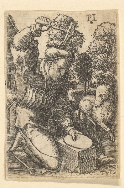 Heinrich Aldegrever etched this tiny plate of a soldier in 1529. At first glance, this Landsknecht, or mercenary, appears as a figure of military readiness with his armor, fire-pan, and bucket. However, these motifs carry deeper symbolic weight. The fire-pan, prominently displayed, represents not only the soldier’s practical role in igniting explosives, but also alludes to the destructive potential of fire, a primal force in human history. Fire has appeared throughout time in different contexts: from the hearths of ancient civilizations to the hellish visions of medieval art, fire symbolizes destruction, purification, and transformation. One only needs to recall the story of Prometheus stealing fire from the Gods to bestow it upon humanity to recognize fire’s lasting impression. The bucket of water to extinguish fire, in contrast, offers a counterpoint, suggesting control and containment. These symbols, deeply embedded in our collective consciousness, evoke powerful emotions, reminding us of the delicate balance between creation and destruction, order and chaos. They engage us on a subconscious level with the eternal dance of opposing forces.