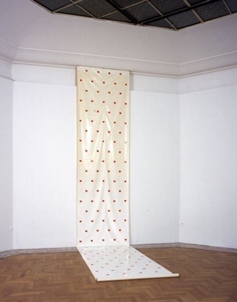 Editor: Here we have Giulio Paolini's "Ritratto dell'artista come modello," or "Portrait of the Artist as a Model" from 1980, created using mixed media. It's an installation... pieces of plaster scattered around what looks like the back of a canvas. It gives me a feeling of fragmentation, like an artist’s thoughts broken down. What catches your eye in this piece? Curator: For me, the interest lies precisely in those materials and their arrangement. Paolini is revealing the normally hidden labor involved in artmaking. Look at the exposed canvas support. It's usually covered, the "dirty work" concealed, right? And then the plaster casts, clearly mass-produced remnants, littering the space. How does the mass production relate to craft or unique authorship? Editor: It's like he's demystifying the artistic process, showing us the raw materials and construction instead of the finished illusion. Curator: Exactly! It challenges the idea of the artist as some sort of genius separate from mundane work. By showcasing the base materials and processes—the means of production—Paolini implicates the gallery space and even the art market in that labor. Think about the gallery as part of that chain. It is bought and sold here. The means by which it ends up in collections and museums impacts the viewer too. Editor: So it's not just about the art itself, but also about how the artwork exists within a larger economic and social system. The material *is* the message, you could say? Curator: Precisely. He encourages us to see beyond the polished surface and recognize the physical and economic realities that shape art. Editor: I see the piece in a new light now. I thought the installation expressed a kind of fragmentation of artistic concepts, but it really foregrounds the actual construction, market forces, and the labor required to create the illusion of art. Thanks! Curator: Indeed, questioning the presumed specialness of the artwork itself is a key aspect. That's what makes Paolini's exploration of materials so compelling here.