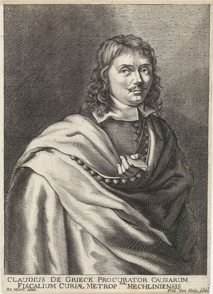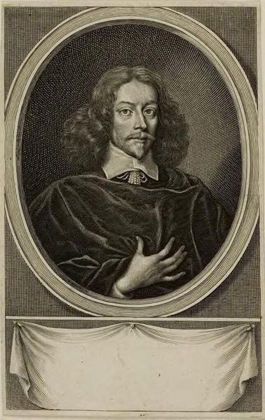 Curator: We're looking at a portrait of David Teniers II, created sometime between 1649 and 1662. It's an engraving, currently housed at the Rijksmuseum. The artist behind this likeness is Pieter de Jode II. What's your initial reaction? Editor: Oh, it’s like peering into a past meticulously etched! It feels very self-serious, that’s my first impression. Is that… meticulous melancholy? Curator: I see what you mean! The engraver’s marks do give it a certain air. He was known as an eminent figure painter and landscape artist, highly regarded by royal circles. Do you notice the detail in the ruff, contrasted against the hatching? Editor: The ruff is almost otherworldly! It looks like a captured snowflake—gossamer and grand. Yes, the contrast... it’s stark but inviting, as if he is coming forward, even if with caution. There’s almost a hyper-reality to his eyes, given the nature of the medium. Curator: Indeed, Jode really plays with texture and tone here, drawing heavily from Baroque conventions. We observe not just a depiction, but also, I suggest, a careful statement about Teniers' status—engravers were often translating existing painted works into a format for broader circulation. He was advertising Teniers! Editor: Right! Making art accessible before “accessible” was even a word. And genre scenes and portraits were of course very important back then. It's funny though. Knowing the context deepens my initial reading; now, he seems to project confidence instead. Clever propaganda! Curator: Exactly! So, this portrait becomes more than just a depiction; it's an artifact steeped in socio-economic meaning—commerce, craftsmanship, the artist's standing within it all. Editor: In seeing the texture itself, it adds a layer to what he made of this image! A different feeling to simply painting an image to last, doesn't it? What begins as melancholic becomes almost bold—interesting to consider the choices, what’s emphasized… how feelings get re-created over time and change us. Curator: That's wonderfully put, almost echoing how meaning itself is printed onto our own consciousness through art, don’t you agree?