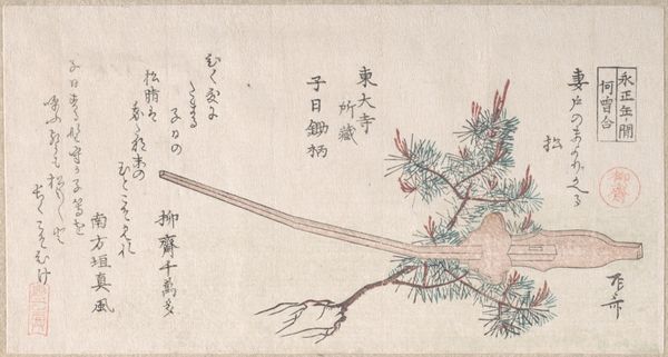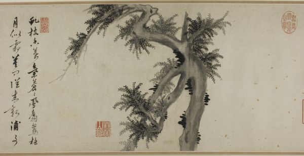 Ike no Taiga created this ink drawing of a tree sometime in the 18th century. The composition presents a close-up view of the tree. In this seemingly simple sketch, the artist's formal dexterity is evident in the intricate details of the needles and the rugged texture of the bark, capturing the tree’s essence with remarkable economy. The interplay between the solidity of the trunk and the delicate lacework of the foliage creates a visual tension, while the monochromatic palette accentuates the formal qualities. The tree’s sturdy presence acts as a signifier of resilience and endurance. The artist’s deft use of line and space challenges fixed meanings, inviting contemplation on the transience of existence. The tree acts as a metaphor, and embodies the convergence of aesthetics and philosophy.