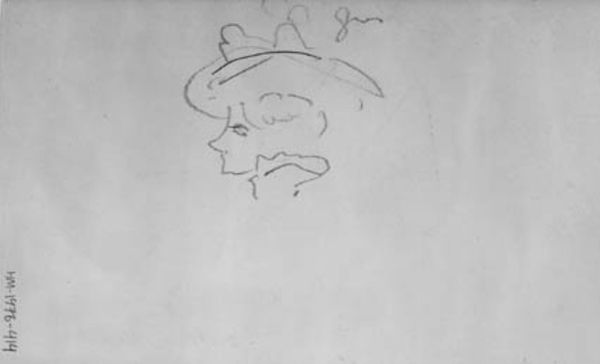 Curator: The portrait we’re observing is a pencil drawing crafted by Henri de Toulouse-Lautrec in 1898. It's entitled "Portrait of Mme Brazier in Profile Facing Left" and resides at the SMK, the National Gallery of Denmark. Editor: My first impression is one of understated elegance. There's a certain vulnerability in the softness of the lines, a quiet observation of a woman lost in thought. The hat, though suggested rather than meticulously rendered, hints at social standing and fashion. Curator: It's a seemingly simple sketch, yet within those lines lies a complex representation of Parisian society. Toulouse-Lautrec was deeply embedded within the culture of Montmartre, capturing its performers, personalities, and places. How do you think this portrait reflects that environment? Editor: Well, beyond the immediate elegance, there's a suggestion of fleeting moments. Toulouse-Lautrec's style perfectly encapsulates the ephemeral nature of modern life, especially the theatre and cafe culture he chronicled. Mme Brazier, in this almost hastily drawn profile, appears caught in a moment of introspection, a pause within the relentless buzz. Is there a reading of melancholy present in that averted gaze, would you suggest? Curator: I can definitely perceive that, particularly in how he uses line. The line seems tentative, seeking to capture not just physical likeness but perhaps an inner state. It contrasts to the graphic posters for which Toulouse-Lautrec became known. The seeming casualness invites our empathy for Madame Brazier. Editor: It speaks to the dual role of art in Parisian society at the end of the century: as entertainment, but also social commentary and personal revelation. This drawing goes beyond merely depicting Mme. Brazier; it subtly explores the individual experience of being a woman in that era, where societal expectations were rigid, yet artistic circles offered certain freedom. Curator: Indeed, the power here lies in the subtle communication between artist and sitter. It highlights how art captures and reflects back not only images, but feeling too. Thanks for teasing out these complex symbols! Editor: It was a pleasure to consider this portrait with you and discuss its significance!