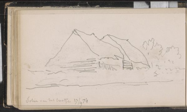 Curator: This is "Near St. Stephens, New Brunswick, Canada," a watercolor and ink drawing created in 1951 by John Marin. Editor: It feels like a quickly captured impression. The colors are so light, almost transparent. Like a fleeting memory of a place. Curator: Marin often sought to capture the energy of a place, that's right. His application of loose washes, combined with the more decisive lines of ink, give it that sense of immediacy. The abstract lines also hold great symbolism for him, to represent hidden movement and energy found in nature. Editor: I'm drawn to the raw, sketch-like quality of it. You can almost see the artist working, wrestling with the landscape. The visible spiral binding hints at this being a page from a sketchbook, emphasizing the work as a material artifact of the artistic process. Curator: Indeed. It gives it an almost diary-like intimacy. His deliberate arrangement of lines and shapes hints at his broader interest in capturing a more lasting truth about this location. Editor: I am interested to what kind of inks he used. The tones go from greys to deep brown shades and how each is captured on the absorbent ground of the paper. And how those bleed into the soft application of watercolor. Curator: You are speaking to a great synergy that he created. His conscious choice of simple materials like ink and watercolor over something grander speaks to the inherent beauty he found within this natural landscape, the core symbolism. Editor: And how this ties back into ideas of production and making. There's no pretense, the whole sketchbook on display as the final work of art itself. The direct process really becomes part of the artistic statement. Curator: A visual encapsulation of time and memory, filtered through the artist's sensibility and raw materials, it has many qualities to it. Editor: It makes you appreciate the skill in capturing so much essence with seemingly so little effort, and with so few tools. It leaves you wanting to witness what is beyond those simple layers of color.