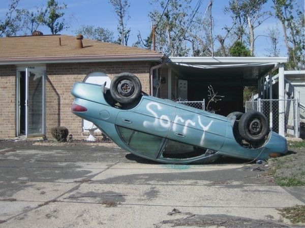 Richard Misrach made this photograph in 2005, as part of his series documenting the devastation of Hurricane Katrina in New Orleans and the Gulf Coast. While Misrach is known as a fine art photographer, here the medium serves to document a scene of total catastrophe: a landscape transformed by raw natural forces. What would normally be discrete objects – a house, a car, a boat – are here fused into a single, absurdly precarious assemblage. The material reality speaks volumes. The car, once a symbol of personal mobility and economic status, is now just another piece of debris, as is the boat, normally a means of recreation or livelihood. Consider the labor and resources embodied in these objects, now rendered useless. The photograph bears witness to a moment when the normal order of things is upended, and the illusion of control over our environment is shattered. It challenges any distinction between art and documentation, between individual and collective experience.
