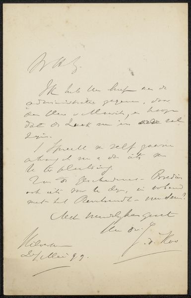 This is a page of "Aantekeningen uit archief Philip Zilcken", by Philip Zilcken. It is undated. At first glance, the page is filled with dense, flowing script. The ink, faded with age, creates a subtle contrast against the off-white paper. The overall texture hints at the physical act of writing. The composition reveals a complex interplay of lines, creating a visual rhythm that reflects the movement of thought. The handwriting, with its loops and curves, seems to suggest the mind at work, capturing fleeting ideas. The words themselves, though indecipherable without closer inspection, function as abstract forms contributing to the overall structure. The use of script challenges fixed meanings. Handwriting becomes a medium of personal expression, resisting the uniformity of printed text. The act of writing itself becomes a performance, capturing the writer's voice and the immediacy of thought. In this way, the artwork invites us to contemplate the act of communication itself and the relationship between language, thought, and the visual form.