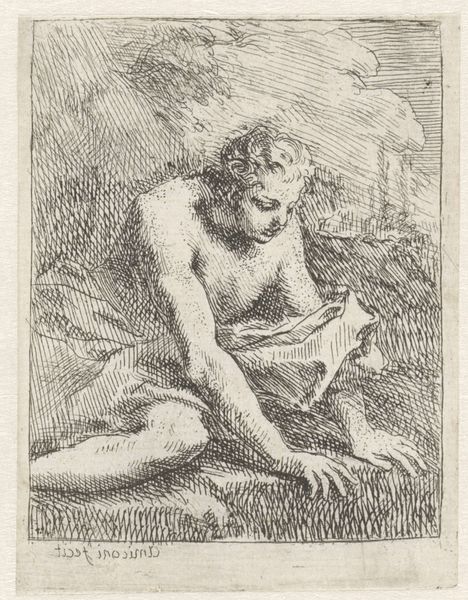 Agostino Veneziano etched this Seated Youth in the early 16th century. Here, a nude young man sits pensively on a rock next to a horse, draped in cloth, with a landscape in the background. The figure's posture, with his hand supporting his head, evokes melancholia, a motif deeply rooted in classical antiquity. This gesture reappears across centuries, from ancient sculptures to Renaissance paintings, each time carrying the weight of human contemplation and sorrow. The horse, often a symbol of strength and vitality, is here subdued, perhaps reflecting the youth's internal state. Consider how such imagery taps into our collective memory, where certain gestures and symbols evoke shared emotions, transcending time and cultural boundaries. The image engages us on a subconscious level, drawing us into the youth’s world of introspection. Like a recurring dream, this image of reflective melancholy resurfaces, constantly reinterpreted, forever echoing through the corridors of art history.