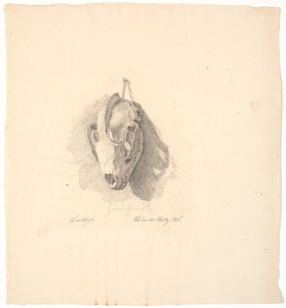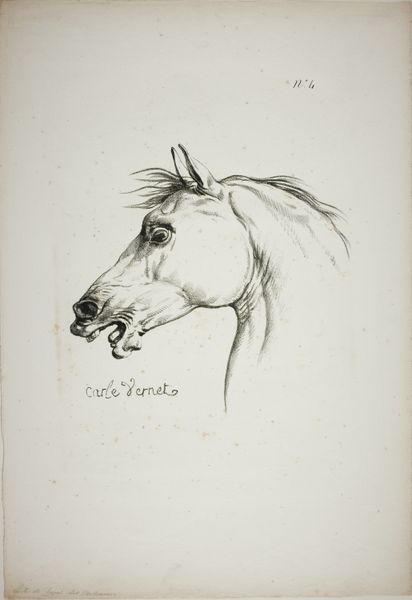 Here is the "Detail of Horse's Head, Enlarged to Triple Size, Norman Royal Guard, No. 1," by Carle Vernet, a drawing currently residing at The Art Institute of Chicago. The drawing immediately strikes us with its stark simplicity: black lines on a pale ground, emphasizing the horse's head. Vernet's composition is straightforward, yet it evokes a certain classical monumentality. The enlargement of the horse's head to triple size compels us to scrutinize every detail. Vernet uses line to convey texture and volume, from the flowing mane to the muscular contours of the face. The horse's eye, rendered with careful precision, reflects a sense of alertness. One wonders whether Vernet is using the horse as a signifier of something else: power, prestige, or even the glory of the Norman Royal Guard? The tension between naturalism and idealization makes the drawing resonate beyond mere representation. It serves not only as an artistic exploration of form but also as a cultural artifact, inviting us to question the values it embodies.