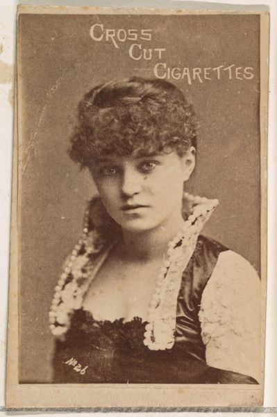Card Number 112, Clara Ellison, made by W. Duke, Sons & Co., is a small, rectangular card with a sepia-toned photograph, typical of cigarette cards from this era. The muted palette and soft focus give the image a nostalgic feel. The composition is divided into zones. The top advertises "Cross Cut Cigarettes ARE THE BEST", while the lower features the actress's name and card number. The main visual element is the portrait of Clara Ellison. The photograph is composed with the subject gazing slightly off-center, creating a sense of depth and narrative intrigue. Her attire, a lavish fur stole and embellished gown, speaks to the performative nature of her profession. The texture of the fur contrasts with the smoother tones of her face, adding visual interest. The card presents Ellison not just as an individual but as a carefully constructed image for mass consumption, reflecting how commercial and cultural values intertwine. This interplay reveals the complex relationship between art, advertising, and identity in late 19th-century culture. It challenges our understanding of representation as a multi-layered process.