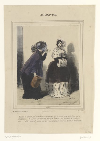 Curator:Editor: Ah, here we have "Every day at the ball!" by Paul Gavarni. It's such a cheeky image, though the mood feels a bit…tense? What catches your eye? Curator: It’s got that delightful Gavarni bite! He really skewers Parisian society, doesn’t he? Look at the title, "Every day at the ball!" Do you think it's pure joy, or is there a hint of something else? Editor: Maybe…exhaustion? Like they’re trapped in this endless cycle of social obligation. Curator: Precisely! It’s all about appearances, that "Carnaval" masking the reality. See how he's drawn the man so stiff, almost like a puppet? Editor: I didn't notice that at first, but now I do! It's so true that the man looks like a puppet. And the woman's posture…it speaks volumes. Thank you! Curator: My pleasure! It's amazing how much emotion and critique an artist can convey with a few lines and a well-placed title, isn't it?
