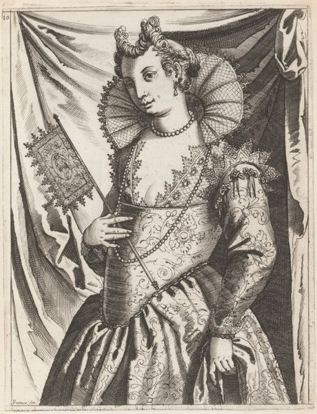 This engraving of a Venetian woman was made by Giacomo Franco, who lived between 1550 and 1620. The print presents us with an image of wealth, as demonstrated by the woman’s jewellery, hair and clothing. This image can tell us a lot about the function of images at the time, and the social structures of the time, in Venice. For example, the woman’s veil may signify her piety and adherence to the church. Her hand over her chest may be a sign of her chastity. Her jewellery is evidence of the wealth of the Venetian state, which at the time was a powerful trading centre. Venice was a mercantile centre where the accumulation of riches was encouraged. The image normalizes such accumulation as it displays the spoils of empire. To understand the image fully we might look at fashion plates from the time, or moralizing literature that could shed light on the behaviour of elites. The image gives us access to the society of the time, but also serves to reproduce it.