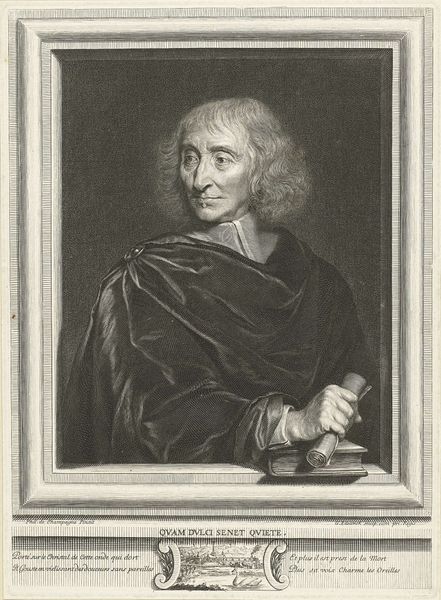 Friedrich Wilhelm Burmeister created this portrait of Michel Le Tellier, using etching, around the late 19th century. The composition emphasizes a formal, somewhat rigid structure, where the subject, Michel Le Tellier, is meticulously rendered with a focus on detail and texture. The artist used line and shading to sculpt form, creating a sense of depth and volume. The texture of Le Tellier’s robes, hair, and facial features are carefully articulated. Burmeister’s formal approach mirrors the subject's own status. It is a visual language of power and intellect. This etching, with its structured composition and attention to detail, presents a formal study in power and representation. It reflects how art could function as both a mirror and a construct of identity.