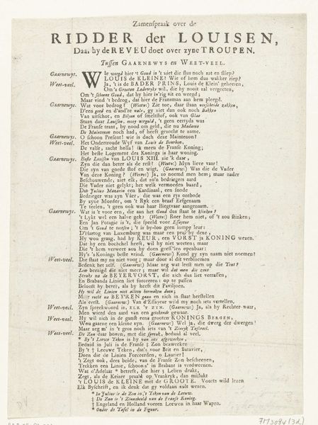 This broadside, produced by Carel Allard around 1708, satirizes the French loss at the Battle of Oudenaarde. The central motif here is language itself, twisted and contorted to mock the defeated French. Note how the text announces it is sent from Pluto's realm; a classical reference to the god of the underworld. This motif connects to ancient ideas of defeat and death, echoing through later depictions of Hades in Renaissance art. The use of classical references to underscore contemporary political events is a hallmark of the period, reflecting a deep engagement with cultural memory. Allard's distortion of language isn't just humorous. It hints at the psychological trauma of defeat. The broken syntax mimics the disarray and emotional turmoil of the losing side, suggesting a subconscious release of anxiety through the absurd. This broadside isn't merely a record of political satire; it's a fascinating look at how collective memory and cultural symbols are manipulated to process contemporary events, revealing layers of meaning that continue to resonate across time.