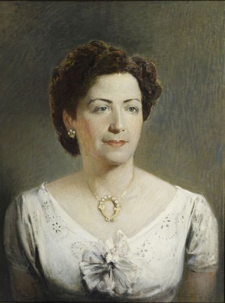 Editor: Here we have Albert Lynch's "Portrait of a Woman in Blue" from 1912. The delicate impasto work makes the woman almost seem to shimmer. How do you read the formal elements within this composition? Curator: The immediate emphasis, of course, lies in the portrait's chromatic arrangement. Note the triad formed by the blue dress, the subtle, muted earth tones in the background, and the deliberate counterpoint offered by the singular red flower. This generates a contained but impactful dynamic. Do you perceive the subtle lines that Lynch employs? Editor: Yes, I see the fine brushstrokes, particularly how they define the contours of her face and dress, and almost blend to blur around her shawl. It's a soft, romanticized style of Realism, isn't it? Curator: Precisely. Look closer, though, and consider the internal structure. Notice how the linear arrangement of her body creates a subtly diagonal axis within the pictorial space. This challenges the symmetry we often see in portraiture and adds to its elegance. How might that impact the semiotic weight? Editor: That's interesting; it does create a more active composition than I initially realized. The slight tilt of her head along that axis brings more dynamism to her expression too. I guess the simplicity is deceptive. Curator: Indeed. The material arrangement, and linear organization together yield an intricate set of relational dynamics, culminating in a rather complex composition. A very thorough orchestration of its aesthetic elements. Editor: Thank you! It’s fascinating to unpack how those small artistic choices really shape the overall impression. Curator: An absolute pleasure; contemplating these intrinsic aspects has given me cause for renewed appreciation.