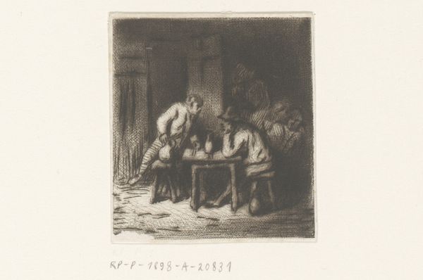 Charles Jacque etched this tavern scene, capturing a timeless tableau of camaraderie and contemplation. Central to the composition is the shared drink, a symbol echoing back to ancient rituals and symposiums, cementing bonds between individuals. Observe the posture of the figures, slouched yet engaged, a motif that recurs across centuries, from Roman frescoes to Dutch Golden Age paintings. The dim lighting, reminiscent of Caravaggio, casts shadows that invite introspection, engaging viewers on a subconscious level. The inn itself is more than just a setting; it is an ancient archetype, a liminal space where social boundaries blur and stories unfold. This space, unchanged through the ages, connects us to the past. A shared human experience, recurring, evolving, yet eternally familiar.