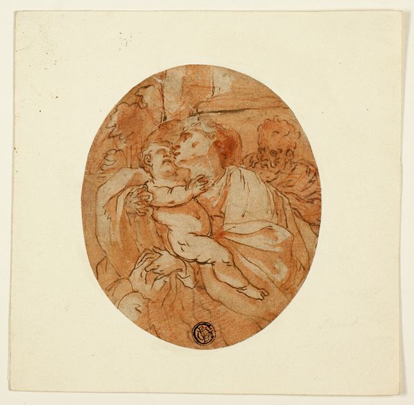 John Hamilton Mortimer rendered this delicate roundel of "Three Oriental Heads" with pen and brown ink. The composition, confined within the circular format, presents three figures in close proximity, evoking intimacy and a sense of shared space. Mortimer's use of line is striking. Quick, energetic strokes define the contours of the faces and drapery, creating a dynamic tension. The hatching and cross-hatching techniques model the forms, suggesting depth and volume. The faces, though minimally detailed, are expressive, capturing distinct emotions or states of contemplation. The man on the left appears to be looking up, with what could be an expression of awe. The choice of medium—pen and ink—adds to the immediacy and spontaneity of the sketch. The monochromatic palette focuses attention on the artist's skill in manipulating line to convey form and emotion. The artwork challenges viewers to find meaning in the interplay of lines and forms, fostering ongoing interpretation.