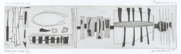 Curator: Here, we have Esq Tom Phillips’ "Music Drawing". What strikes you first about the piece? Editor: The lines, definitely! It's very graphic, almost like a blueprint. What materials did he use? Curator: The process reveals much. The graphite’s layering and erasure suggest a repeated, almost ritualistic making. Look at how the lines interact. Are they truly distinct? Editor: Not really. They overlap and blur. So, you're saying the *making* of this is key to understanding it? Curator: Exactly! The labor, the materiality – it all speaks to how art production mirrors broader societal processes of consumption and transformation of raw material. It almost seems like an assembly line, a pre-industrialized one perhaps. Editor: I never thought of it that way! The marks do seem repetitive in a way. Curator: So the value here lies not just in the finished image, but in the evidence of its material construction. Editor: Thanks! I'll certainly think about art differently from now on.