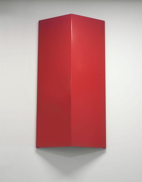 Editor: This “Untitled” piece is by John McCracken and appears to be an acrylic-painted sculpture. Its simple geometric form and striking yellow hue immediately grab my attention. How should we interpret this work through the lens of its form and composition? Curator: Focusing solely on its formal qualities, we observe a rectangular prism, its surface flawlessly coated in vibrant yellow. The artist presents the viewer with the unadorned materiality. Notice how its smooth, planar surface meets the sharp edges of the form. The question isn’t ‘what does it represent?’, but ‘what does it present?’. Consider the relationship between its surface and the surrounding space. Does the color contribute to the volume, perhaps defining a boundary? Editor: So, the essence lies in the purity of shape, color, and the tangible quality of the surface itself? Is it also about the contrast of that form to its surroundings? Curator: Precisely. We could examine the nature of objecthood itself, that it is there as an independent presence in the room. One could argue it invites a phenomenological response – an awareness of our own physical presence in relation to this minimalist form. It reduces art to its most irreducible components. What kind of dialogue is created with the gallery space, or, in the absence of a gallery, with any given surrounding? Editor: That is fascinating to consider how it occupies and defines its space! I’ve definitely gained a deeper appreciation for how minimalist works encourage us to analyze art on its own terms rather than trying to decode some sort of hidden meaning. Curator: Indeed. This work serves as a study in reductive form, devoid of representation, compelling us to explore the interplay between color, shape, and space.