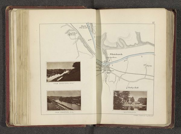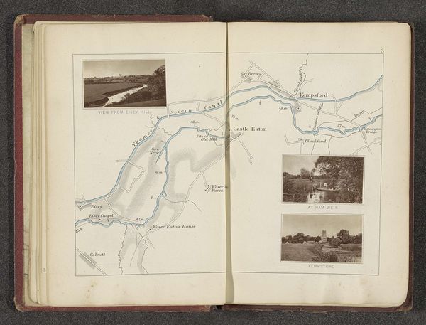 This illustrated map of the Thames near Richmond upon Thames was made by Henry W. Taunt, likely around the turn of the 20th century, using photographic and printing processes. The map itself would have required a painstaking method of engraving to create the printing plate, a skilled craft that demanded precision. The small photographs, possibly albumen prints, capture the area's picturesque qualities, framing it as a desirable destination. Notice the contrast between the detailed cartography and the soft focus of the photographs. Each element speaks to a different kind of labor: the precision of the mapmaker, the eye of the photographer, and the hands of the printer. The combination of these techniques suggests a desire to present a comprehensive and appealing image of the Thames region, indicative of the growing tourism industry and the commodification of leisure time. Considering the intricate processes involved in its creation, this map underscores the value of both skilled labor and the natural landscape it represents.