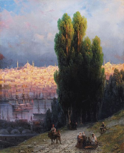 Ivan Konstantinovich Aivazovsky painted "The Galata Tower By Moonlight," capturing the majestic tower in Istanbul under the soft glow of the moon. Dominating the scene, the Galata Tower is a powerful symbol of cultural intersection and historical continuity, a silent witness to the ebb and flow of civilizations. The tower's commanding presence echoes the Tower of Babel, an archetypal symbol of human ambition and architectural aspiration. The symbolic bridge between heaven and earth evokes a deep, primal response within us. This longing is a universal human impulse reflected in countless structures throughout history, from the ziggurats of ancient Mesopotamia to the soaring cathedrals of the Gothic era. The image creates a deeply affecting emotional experience. The serene moonlight elicits a sense of introspection, tapping into the collective memory and subconscious yearning for connection. The image is not just a depiction but a powerful vessel, carrying with it the weight of history, the echoes of cultural memory, and the timeless symbols that continue to resonate within our collective consciousness.