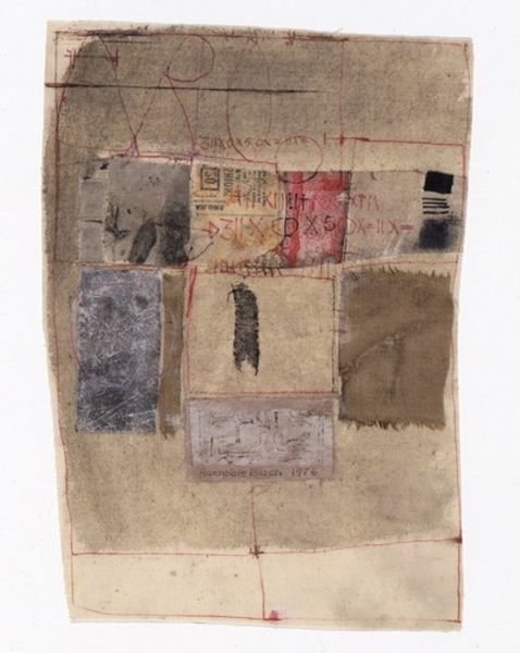 Hannelore Baron created this untitled mixed media artwork with humble materials like paper, thread, and pigment. The artwork is a layered collage, and Baron uses the inherent qualities of her materials to create a distressed, aged aesthetic. Patches of color and fragments of thread form a visual language which speaks to memory and loss. Baron’s techniques engage with traditions of assemblage and collage, moving beyond the realm of fine art. The process involves meticulous handwork. Each layer is carefully placed and manipulated, contributing to the work’s tactile and textural richness. The distressed nature of the materials hints at themes of decay and fragility, inviting reflection on the human condition. By elevating everyday materials through artistic intervention, Baron challenges traditional distinctions between art and craft. The labor intensive processes reflect a deliberate engagement with materiality, imbuing the artwork with social and cultural significance.
