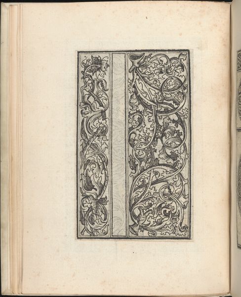 Iseppo Foresto’s “Lucidario di Recami, page 2” presents a series of vertical panels filled with intricate designs of flora and human figures, rendered in ink on paper. The composition is structured by the repetition of patterns within the vertical frames, creating a visual rhythm that invites the eye to move systematically across the page. The use of black ink against the stark white paper emphasizes the linear quality of the designs, highlighting the delicate curves and sharp angles of the stylized plants and figures. Each panel, while distinct, shares common motifs, reflecting a semiotic system where floral elements and human forms function as signs within a broader cultural context. The small human figures intertwined within the vegetal patterns disrupt the pure symmetry of the natural forms, complicating any straightforward reading. Foresto destabilizes the traditional, using the framework of ornamental design to engage with ideas of the human figure. This piece is a meditation on the interplay between nature and culture, challenging the viewer to find meaning in its structured yet playful arrangement.