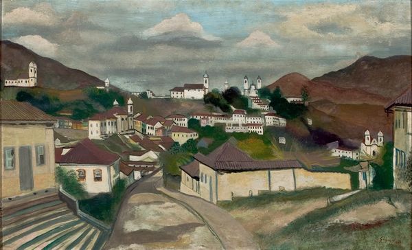 Curator: Let’s look closely at Othon Friesz's "Udsigt mod en landsby" or "View Towards a Village," made sometime between 1923 and 1926. Friesz used oil paint, and the canvas currently resides at the SMK in Copenhagen. Editor: The first thing that strikes me is the vibrancy of the color palette, especially for a landscape. There's a roughness in the application of paint that makes it feel very immediate. What can you tell me about how the materiality of this piece connects with the social context of its creation? Curator: Consider the implications of oil paint here. While seemingly traditional, Friesz's Fauvist approach – the energetic brushstrokes, bold, unmodulated colors – flies in the face of academic conventions that valued a smooth, polished surface. This, in itself, speaks to a challenge of established social norms through the very means of production. Look at how he applies the pigment, not to realistically represent the landscape, but to almost build it anew with his own labor. Do you see how the thick impasto almost feels… industrial? Editor: Industrial? That's interesting. I was caught up in the vivid colors, but you’re right, the paint application feels almost like bricklaying. I suppose that makes sense given that Friesz was engaging with landscape painting, a genre historically tied to ideas of land ownership and labor. Curator: Exactly! Now think about what "village" meant in the 1920s - rural decline, the rise of cities. Friesz isn’t just passively depicting a scene, he's actively reconstructing it, bringing a modern sensibility to a traditional subject. Notice, for instance, the simplification of forms, almost like blueprints. What could that signify regarding Friesz's ideas of industry versus rurality? Editor: It suggests that industry is not necessarily separate from the countryside; it’s re-shaping and defining it, a total transformation through physical materials and their application, both the houses and landscape themselves rendered industrially through the handling of paint. I appreciate how your materialist perspective brought that out. It wasn’t visible for me before! Curator: Art offers endless ways to be seen when approached through new viewpoints. Let's investigate it again some time.