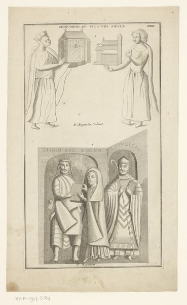 This print depicting two scenes from the life of King Louis IX was made by Dominique Sornique in the mid-18th century. It is a fascinating example of engraving, a printmaking technique that involves cutting a design into a metal plate, inking the incisions, and then pressing the plate onto paper. The linear quality of the print is determined by the engraver's skill in wielding the burin, the tool used to carve the image into the metal. Notice how Sornique has created tone and shadow, not by shading, but by varying the density and weight of the lines. Prints such as this one played a vital role in disseminating images and ideas in the 18th century, acting as a means of mass communication. This allowed the stories of Kings like Louis IX to be circulated, reinforcing social and political norms. By understanding the material and the process, we come to appreciate the print not only as a work of art, but also as a historical artifact.