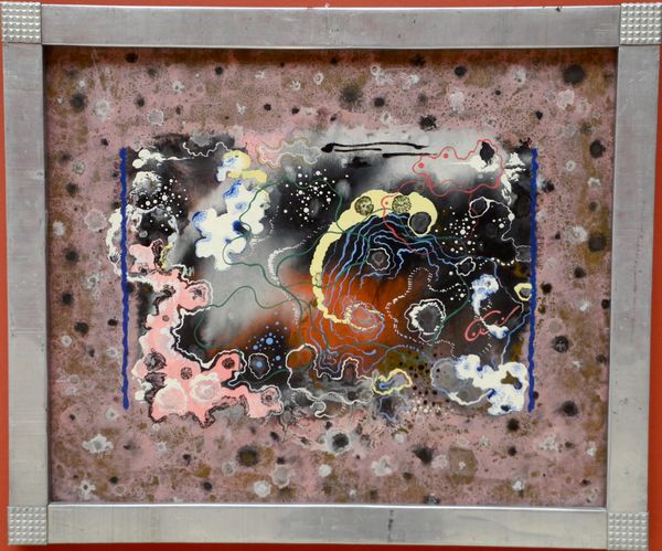 This piece by Austrian artist Christian Attersee is called 'Postcards'. It's a playful concoction of imagery, probably made with acrylic or oil paint and maybe some collage. The way Attersee layers these postcard-like images, held up by a painted hand, it’s like he’s inviting us into his own mind. The color palette is so bold, almost jarring, but somehow it works. Check out the bottom, these cherubic figures erupting from flowers. And those arrows above that seem to suggest speed or direction. Attersee's paintings remind me of early David Hockney, that same embrace of a vivid, dreamlike reality. Like Hockney, Attersee makes you question what you think you know about the world. He reminds us that art isn't about finding answers, but about reveling in the endless possibilities of seeing.