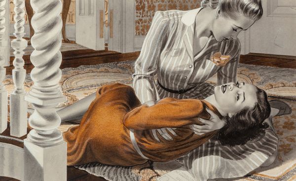 Tom Lovell made this illustration for the McCall’s magazine story, The Disappearance of Mary Drake, and you can see how the story unfolds through the way he applies the paint. There's a great dynamism created through these characters, caught in a heightened moment, and the whole scene is rendered with such purpose. Look at how the paint is built up, especially in the foreground - those delicious marks on the yellow chair practically vibrate off the surface! Then look at the woman leaving the room, the paint almost seems to dissolve into the background. Isn’t that interesting, how Lovell guides your eye to the ‘right’ part of the story? Norman Rockwell springs to mind when I look at this piece, you can see they were both aiming for this specific brand of American realism. And maybe that’s what I love most about art - the ongoing conversation between artists, echoing and responding across time.