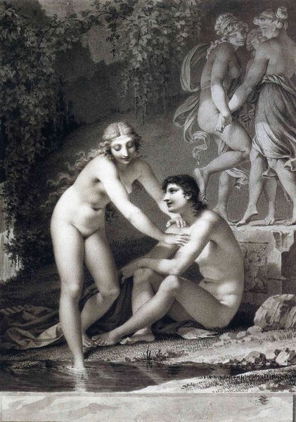 Edward Burne-Jones crafted "Pygmalion and the Image IV: The Soul Attains" using oil paint, presenting us with a scene dominated by soft, muted tones and a composition built around the interplay of vertical and diagonal lines. The texture of the paint, though smooth, hints at the subtle gradations of light and shadow that give form to the figures. The artist employs a semiotic system where the male figure kneeling before the female signifies reverence and supplication. The formal arrangement suggests a dichotomy between the ideal and the real, the spiritual and the corporeal. The classical subject is rendered in a style that evokes a sense of yearning and the transcendent power of art. Burne-Jones, through his handling of form and narrative, destabilizes the viewer's sense of certainty, creating a space for contemplation on the nature of desire and creation. Consider the way the subtle gradations of color across the canvas functions. It serves not only to depict form but also to create a symbolic space where art and life intersect. This intersection invites ongoing interpretation, revealing the artwork's capacity to provoke thought and emotion.