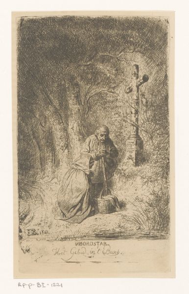 This print, by Fritz Syberg, was made in Denmark, in 1893. It combines two of his earlier works into a single, unsettling image. The scene is set in a forest, but this is no ordinary landscape. Syberg's forest is a space of encounter between life and death, suggested by the figure of Death, holding a baby, and a kneeling woman. The sharp contrasts of light and shadow evoke the Nordic Symbolist movement’s preoccupation with mortality. Syberg came from a humble background, and his unflinching depictions of peasant life challenged the conservative artistic establishment. His work often incorporated social commentary, questioning the idealized portrayals of rural life prevalent in Danish art at the time. To fully understand Syberg, we need to delve into the social history of late 19th-century Denmark: the rise of industrialization, the tensions between city and country, and the growing awareness of social inequality. It is through this contextual lens that the artist's vision truly comes to life.
