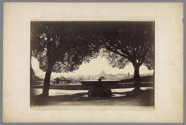 Curator: What a serene scene. This hand-colored albumen print, captured before 1897 by Kazumasa Ogawa, presents a family gathering in Ueno Park, Tokyo. It is entitled “Family on a bench in Ueno Park, Tokyo, Japan.” Editor: There’s an ethereal quality here, almost dreamlike. The soft colors and the blurring lend a gentle and poignant feeling of a lost moment. Curator: Notice the cherry blossoms in full bloom, which certainly carry strong symbolic weight in Japanese culture. Beyond merely decorative appeal, they represent the ephemeral nature of life and beauty, a key element in Buddhist thought. Editor: That contrast feels intentional, right? To situate a domestic tableau – the family grouped together, their postures suggesting connection - within a wider cycle of change. It hints at complex social structures and perhaps even imperial ambition when taken into account this image exists pre-Russo Japanese war. It is interesting that the photographer omits signs of militarization and urbanization which were rampant. Curator: Ogawa’s mastery lies in his embrace of both Western photographic techniques and distinctly Japanese aesthetics. He was instrumental in advancing photography as a recognized art form during the Meiji era. It appears he employs soft focus and gentle colors to suggest classical scroll painting compositions and mood. Editor: The use of photography in this period is worth examining. Consider the political context and how representations of Japanese citizens shift between foreign projection and domestic understanding. Family life especially gets emphasized at times like this and the image might serve some ideological purposes. Curator: I see how you might see this image in light of these considerations. What strikes me, though, is how universal this moment feels. Regardless of culture, we can identify with the family taking repose under the symbolic blossoms. Editor: It does, at its heart, evoke a sense of belonging and of shared humanity within transient beauty, yes, a valuable thought to take away from this. Curator: Ultimately, viewing these early photographs offer not only a glimpse into the past, but perhaps even insights into enduring themes of family, transience, and the human condition across time.