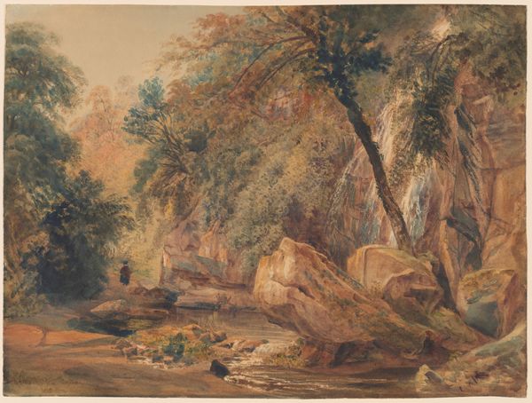 Curator: Looking at “Bomen in een duinlandschap,” or “Trees in a Dune Landscape,” painted sometime between 1821 and 1891 by Guillaume Anne van der Brugghen, I immediately sense a certain hushed quality, like the moment right before something profound happens. What is your initial response to the artwork, seeing it now? Editor: There’s definitely a stillness, a deep quiet. But to me, it's almost melancholic, isn’t it? A muted palette evokes the somber tones associated with romanticism of the 19th century. The shadowy forest seems to swallow light, creating an intense space. Curator: You picked up on its quiet emotional intensity. It reflects Brugghen's interest in conveying the serene qualities of nature as an advocate of Realism movement, while incorporating impressionistic painting techniques like the plain air. What is especially interesting is that plain-air wasn't popularized as a movement till much later, by painters like Monet. Editor: Right. There's something quite profound in how Brugghen used a realism framework to present this scene, seemingly without judgement. Are we romanticizing a patriarchal past by viewing these "unfiltered" landscape scenes of that time through a rose-colored lens, thus ignoring all the systemic class/gender violence behind such pastoral settings? Curator: It is an important perspective to raise, as many paintings of this period depicted natural landscapes as idylls for society. While that's the perspective being put forward through Brugghen's perspective and focus as an artist in that moment, his work is devoid of specific social commentary, even though it emerges within the broader sociopolitical dynamics you’ve referenced. This piece in particular exists independently and should be analyzed as such. Editor: Maybe the focus is really just that: trees as individual, un-narrativized beings! To resist imposing stories where there are none! Curator: Absolutely. That interpretation resonates with Brugghen’s style. There's an argument to be made for him as a quiet observer, simply capturing light, texture, and form. The way he employs paint in visible brushstrokes emphasizes these elements of landscape. Editor: True, focusing on the immediacy of vision aligns well with a kind of rejection of prescribed roles for trees, for nature in general, but I cannot help considering if by simply documenting nature's unencumbered essence in this forest scenery, Brugghen unknowingly or knowingly, captured the zeitgeist of freedom. Curator: His use of realism to portray nature lends credence to both the literal and the conceptual arguments being presented. Editor: Looking closer, what is evident for me is that at that point in time, and for the generations to follow, the representation of our deep, almost inextricable roots to our world are evident. It shows me that even something seemingly so unpolitical can carry revolutionary force by visualizing that bond with Earth in a profound moment, something particularly needed in this era of extraction and environmental destruction. Curator: A compelling way to contextualize the artwork within contemporary dialogues on nature, politics, and representation. Editor: Indeed.