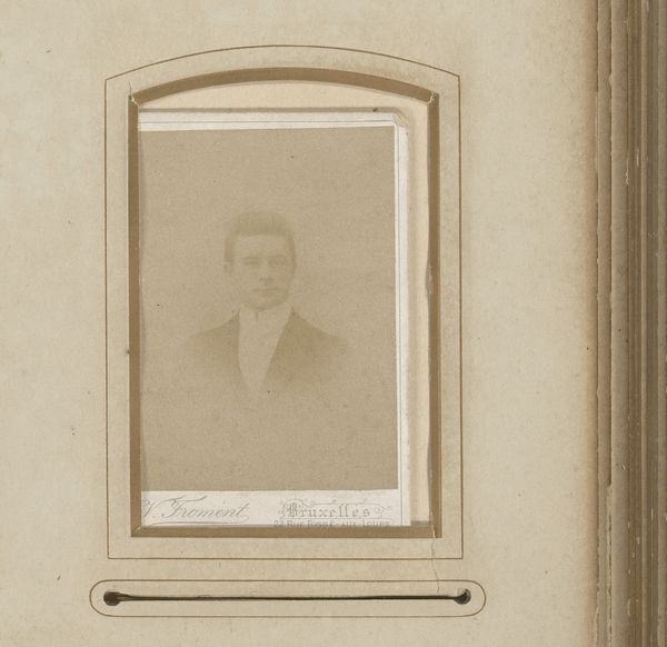 Ferdinand Fussen’s diminutive “Portret van een man met snor” presents a man framed within muted tones, a composition that feels both intimate and distant. The softness of the photograph mutes the figure into a sea of beige and brown, creating a sense of detachment, yet simultaneously brings attention to the structured formality of the portrait. The man's suit and carefully groomed mustache are rendered in soft focus, blending into the neutral background. The subtle lines defining his features, the curve of his cheek, the shadow under his nose, are all signs pointing to an identity that remains partially obscured. Here, Fussen seems to engage with the semiotics of portraiture, using conventional signs to both present and withhold information. The very act of framing becomes a crucial element, emphasizing how meaning is constructed through inclusion and exclusion. This work invites us to consider how formal elements in photography function not just aesthetically, but also as part of a larger cultural dialogue about identity, representation, and perception.