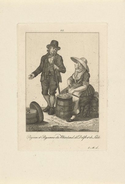 Editor: Here we have Honoré Daumier's 1843 lithograph, "Caricature of the blessing of a wine barrel," currently residing at the Rijksmuseum. It’s a fairly busy composition with a palpable sense of activity…What stands out to you in this piece? Curator: For me, it's the deliberate use of visual language to lampoon social rituals. The scene depicts the blessing—or "baptism," as the title suggests—of a wine barrel. Notice how Daumier employs symbols of both reverence and debauchery side-by-side. Editor: That's interesting. Can you elaborate on that juxtaposition? Curator: Consider the clergy-like figure, positioned as if bestowing a sacred rite. Yet, he blesses not a person, but a wine barrel, subverting religious imagery for satirical effect. How does this contrast contribute to its meaning, do you think? Editor: It definitely lowers the tone, mocking the excessive rituals perhaps, pointing out absurdities in society's fascination with earthly pleasures. The "baptism" seems less about sanctity and more about celebrating excess. Curator: Precisely! Daumier expertly uses these symbols to reflect on societal values. The barrels themselves could also be symbols, representing plenty and abundance but also potential overindulgence and social commentary about class, wouldn’t you agree? Editor: Yes, absolutely. It’s fascinating to see how Daumier loaded so many symbolic elements into what at first glance seems like a simple, humorous drawing. I learned a lot looking at his symbolism. Curator: Agreed, uncovering layers of social critique makes this more than just a funny image, and reveals much about Parisian life during that era.