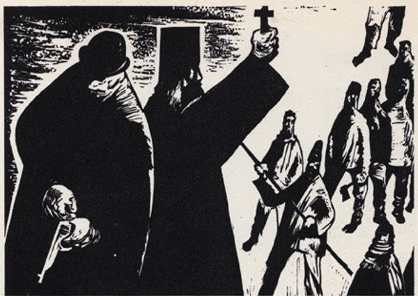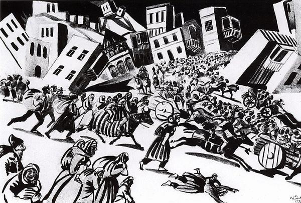 Editor: Alfred Sessler's woodcut, "Workers," created in 1937, is striking with its bold black and white contrasts. The figures are tightly packed, almost merging together. It evokes a feeling of shared labor and, possibly, struggle. What historical context informs how we should view this print? Curator: This piece exemplifies Social Realism, a style that gained traction during the interwar period. Consider the 1930s: The Great Depression gripped America, and globally, anxieties about industrialization and social inequities were rampant. Art became a tool for commentary and, sometimes, protest. Sessler’s choice of woodcut, a traditionally working-class medium, further reinforces this connection to the common person. Editor: So, the medium itself makes a statement. Were there particular artistic movements that influenced the social realist style, particularly in printmaking? Curator: Absolutely. German Expressionism, with artists like Käthe Kollwitz, deeply impacted the Social Realists. These artists used woodcuts to depict the harsh realities of urban life and war. Think about the political messages conveyed and the audience they are addressing. Is Sessler's "Workers" simply a representation or does it advocate for particular changes? Editor: It does feel like more than just a representation. The way the workers are depicted with such strength and solidarity…it almost feels like a call to action. It's interesting how artistic choices, like medium and composition, combine to make a powerful social commentary. Curator: Precisely. And reflecting on today’s art market, how are social realist works perceived versus when they were created and does its purpose get lost in modern consumption? Editor: That’s something to definitely consider further. Thanks, I’ve learned so much looking at this piece through a different lens!