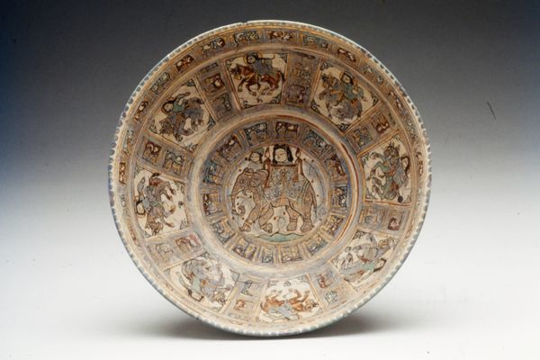 Curator: Here we have a ceramic bowl, created sometime in the 11th or 12th century. The Minneapolis Institute of Art houses this gorgeous example of medieval decorative art. Editor: Wow, it’s so delicate. Gives me a quiet, contemplative feeling. The light color with the umber decoration—it whispers rather than shouts, doesn't it? Curator: Absolutely. From a historical perspective, objects like these weren’t mere table decorations; they represented a complex interplay between social status, artistic tradition, and cultural exchange, specifically embodying key traits found in Islamic Art from the time. Editor: You know, the circular composition with the birds and other stylized animals almost feels like a celestial map, or some kind of talisman. I can almost hear the clinking and scraping from use as well. Makes me think about who used it. Were they happy? Did they fight at the dinner table? Curator: The central, unadorned circle really emphasizes that point, drawing attention to the bowl's utility. And given its likely origins within Islamic art traditions, it is compelling to think of how figuration might reflect attitudes toward visual representation at the time. We can certainly explore what tensions arise through the very rendering of living forms, specifically whether the use of living forms adheres or attempts to depart from particular dogma. Editor: It really lets you daydream, doesn’t it? I think objects like these become more potent the longer they’re around because they collect a residue of all those interactions. Almost like… flavors, you know? A ghostly consommé of daily life. Curator: Precisely. Considering this "Bowl," we must ask ourselves what continuities or changes it experienced over time and how that would then impact our understanding today. These material objects act as social barometers through which one might analyze how visual culture shapes our interpretation of identity formation and, frankly, its continuing evolution. Editor: You've given me a lot to ponder. Thanks for sharing your perspective. Curator: The pleasure was all mine! I really loved your interpretations too.