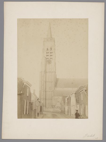 This silver gelatin print of the tower of the Reformed Church at Houten was created by an anonymous photographer, probably working for the Dutch Office for Monument Care. The image's beauty lies in its capacity to encapsulate the inherent qualities of its materials. The gelatin emulsion, rich in silver, captures the form of the tower, emphasizing its solemnity and monumentality. The production of this photographic print involves both technical expertise and manual skill, reflecting a collaborative process where art meets industry. This method, requiring a photographer’s eye, darkroom techniques, and chemical processes, bridges the gap between fine art and skilled craftsmanship. Photographs are a key to unlocking a wider understanding of art and social history, inviting us to recognize value in the everyday, and consider the labor and processes embedded within.