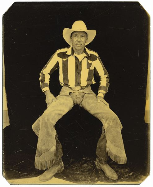 Editor: We're looking at "Pick," a photograph taken by Deborah Luster in November of 1999 at Angola, Louisiana. It depicts a man in work clothes, caught in a moment of contemplation. What do you see in this piece? Curator: This image resonates deeply with historical echoes and symbolic weight. Consider the man's pose, hand to chin – an archetypal symbol of thought, but placed against the reality of his attire, hinting at physical labor. Think about the weight carried within that image: who is he, what is he thinking? Editor: The location, Angola, also adds another layer, right? Isn't that a notorious prison? Curator: Precisely. The name itself conjures the history of slavery and exploitation. Luster isn't just showing us a portrait; she's presenting a complex symbol. The man, adorned with the trappings of labor, embodies generations marked by forced servitude, by inherited oppression. Do you see it in his gaze? Editor: I do. There's a resilience there, despite the weight you mentioned. But it also raises questions about representation – whose story are we really seeing? Curator: That's a critical point. Luster is prompting us to confront the complicated relationship between representation and reality. The man's individual story intertwines with the larger narrative of a place steeped in injustice. How do these histories exist within the picture plane and beyond it? Editor: It's much more than just a picture, then. It’s an icon, charged with historical memory and the ongoing struggle for dignity. Curator: Exactly! And that's the power of the image, isn't it? The compression of so much cultural weight into a single, arresting portrait.
