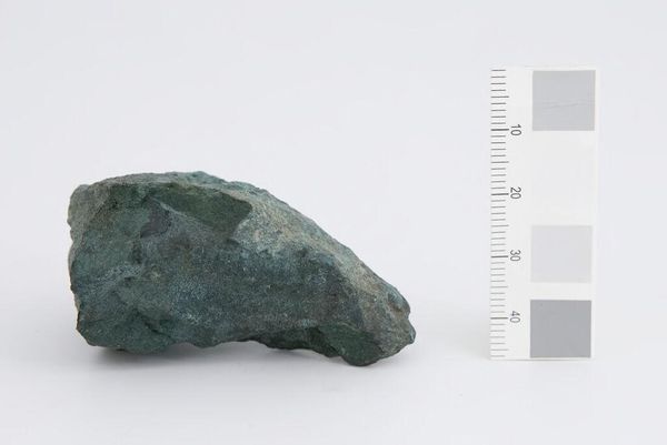 Curator: This is a sample of ilmenite, an iron ore. It was manufactured by the Titanium Pigment Corporation. Editor: Its stark, almost brutal form is immediately striking. The grey tones and rugged texture convey a sense of weight and permanence. Curator: The material itself is fascinating. Ilmenite is a key source of titanium dioxide, a pigment widely used in paints and other applications. Editor: It speaks to our reliance on the earth's resources. The corporation's role highlights the industrial processes that shape our material world. Curator: Indeed. The object’s inherent structure reveals a complex history. Editor: It makes me wonder about the hidden stories contained within this seemingly simple rock.