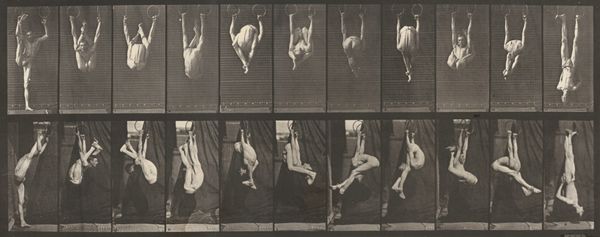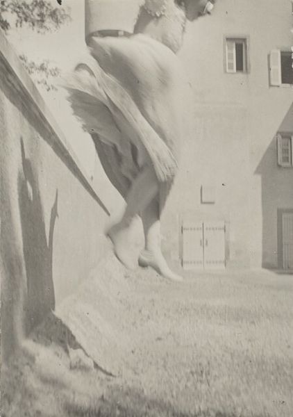 Curator: Sid Grossman's "Coney Island," a gelatin silver print from around 1947-48, really grabs you, doesn't it? Editor: Absolutely. It feels like a fleeting moment perfectly captured, almost like a memory surfacing from a long summer ago. But something about that stark contrast—it's not just bright; it's bleached. Curator: Exactly! The high contrast creates a sense of drama. The diver suspended against what appears to be an almost empty sky. It draws my attention to how Grossman has placed the subjects. You can almost feel the movement through the frame. Editor: And the figures themselves—the diver in mid-air, so perfectly posed as to almost seem staged against the backdrop of on-lookers. They’re dark, looming shapes in the foreground. It feels…claustrophobic, despite all that "sky." The photo has an almost structuralist take with those silhouettes. Curator: Interesting take! I feel it is really raw in how the scene is shown. It brings to mind those endless summer days but there is definitely a tension there too. I think about it through a lens of personal liberation after the second world war and what Grossman must have felt in that time. Do you know, he became involved in political issues through photography so it always make me wonder what the connection is in this particular image... Editor: Well, to look at it technically, one notices Grossman has pushed the tonal range to its extremes. The pure whites emphasize a kind of visual cleansing, perhaps, against those denser shadows... but back to that claustrophobia--we have to ask ourselves why Grossman, on the open beach, opts for that sense of compression. Curator: Which leads us back to that tension again, right? This photo stays with you. It has the power to linger, prompting new questions and new avenues for thought as time goes on. Editor: I agree, and for me, I appreciate how his formal choices deepen its mysteries rather than simply documenting an afternoon at the beach.