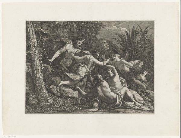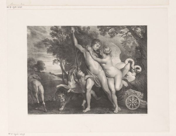 Nicolaas Pieneman created this artwork, "Venus poogt Adonis van de jacht te weerhouden," or "Venus tries to stop Adonis from hunting," using an unknown method. Note the dominant symbol of Venus, the goddess of love, clinging to Adonis, desperately trying to prevent him from hunting. Her embrace speaks to a universal fear: the premonition of loss, a theme echoed in countless works across time. Look closely at the pair of doves drawing Venus's chariot, a symbol of the goddess's power. Consider how the Greeks used the dove as an emblem of Aphrodite, as the Romans would later do with Venus. This motif is a powerful, timeless expression of love and devotion. Observe Adonis’s posture, half-resisting, half-yielding to Venus’s plea. Pieneman captures a fleeting moment of conflict between love and fate, an eternal struggle played out through symbols. The emotional intensity of this piece draws us into a deeper, subconscious understanding of love and loss. The motifs found here are not isolated but part of a continuous, evolving visual language.