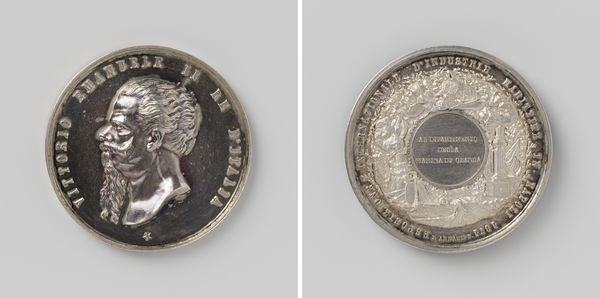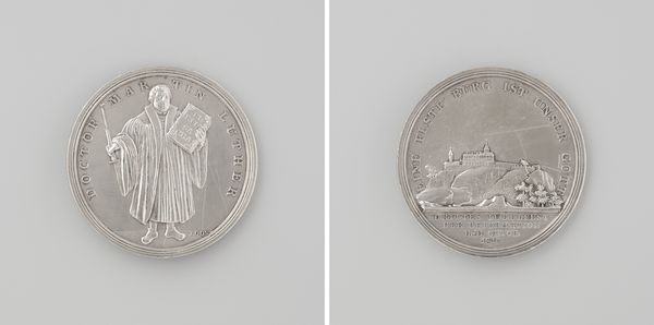 Curator: So, we're looking at a fascinating commemorative piece by Ronald van Tienhoven, entitled "Eerste slag: 400 jaar Nederland-Manhattan." It’s a work from 2009 that appears to be a print or relief on metal, taking the form of a coin or medallion. Thematically, it clearly references the history of Manhattan, in the context of the Dutch colonial history. Editor: Huh, it feels surprisingly...cold. Like a lost coin from some alternate reality where New Amsterdam never became New York. I like the clinical precision though. The lines are so sharp, like an architect’s fever dream etched in silver. Curator: Indeed, that visual coolness speaks volumes, especially given the complexities of colonial narratives. It invokes the act of memorializing a specific version of history, prompting us to reflect on the power dynamics embedded within that act. How do we interpret the inscription referencing the Half Moon sailing up the river? Who does that history center? Editor: I get a faint sense of vertigo looking at the two sides of the coin. One side's all hard-edged cityscape, while the other has this ghostly island silhouette… it’s like two different versions of the same story wrestling for dominance. And, dare I say it, maybe history IS just currency in a way, right? We keep trading versions, upping the value of some narratives while debasing others. Curator: I agree. Think about the composition, the cityscape occupying a privileged space while the Indigenous name 'Mannahatta' and a map representing the original topography becomes secondary, a recessive engraving on the verso of the coin. Van Tienhoven appears to be urging us to critically examine which stories are valued and whose perspectives are marginalized. Editor: It's kind of chilling when you see it like that! I'm thinking it really makes the work stronger in ways the artist might not have imagined at first. It’s like, is he commemorating the anniversary or critiquing it? Both maybe? That uncertainty makes the artwork richer, you know? Curator: Absolutely. It encapsulates the inherent ambiguity of historical representation and colonial legacies, urging a necessary reckoning with historical truth and reconciliation. It isn't just a memorial, it’s a conversation starter. Editor: So, next time you find spare change, check both sides of the story before spending it. Okay, maybe not… but seriously, great way to look at history!