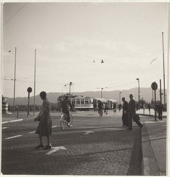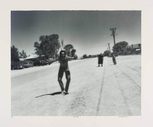 Robert Adams made this gelatin silver print, titled 'Mobile home park, north edge of Denver,' sometime in the late 20th century. The image encapsulates ideas about the expansion of urban space and its effects on the natural environment and human experience. Adams’ photograph frames a seemingly ordinary scene: a mobile home park on the outskirts of Denver, Colorado. However, this image creates meaning through its cultural references and historical associations. The open space, the blandness of the architecture, the lone child walking down the street: all speak to the changing social landscape of America. The expansion of suburbia and its effects on community are key themes here. We might consider this artwork as a social commentary. Adams subtly critiques the social structures of his time, questioning the American dream and its impact on both the environment and social relationships. Understanding this image better requires research into the history of urban planning, suburbanization, and environmentalism in America. This allows us to appreciate the role of the historian in interpreting art, revealing its deep connections to the social and institutional contexts in which it was created.