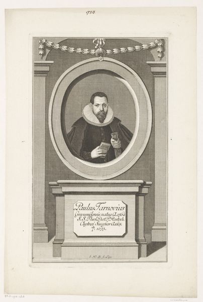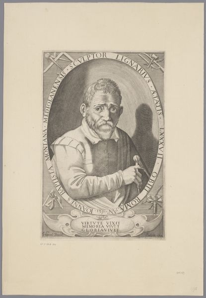 Lucas Kilian's portrait of Elias Holl, created around 1619, captures the architect at the age of 47, a period marked by significant shifts in European architecture and urban planning. Holl, as city architect of Augsburg, Germany, was a prominent figure in shaping the city's landscape during the early 17th century. This print provides insight into the cultural values placed on architects at the time, portraying Holl with the tools of his trade and a detailed plan, symbolizing knowledge and authority. Positioned within an ornate frame, Holl's gaze is direct and engaging, projecting an image of confidence. The elaborate details and symbolic elements within the portrait reflect a society deeply rooted in tradition, yet beginning to embrace the burgeoning ideas of the Renaissance. Consider how this image of Holl, immortalized in print, serves not only as a personal commemoration but also as a statement about the power and legacy of architecture in shaping civic identity.