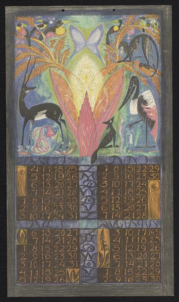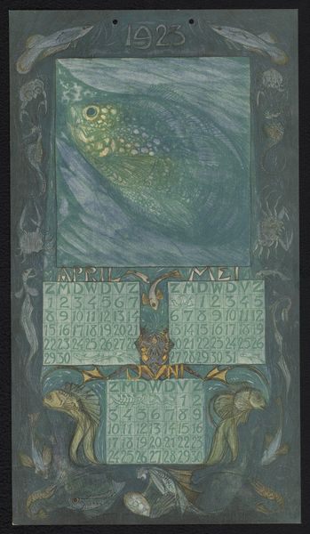 Leo Visser made this calendar page for January to March 1923, and it's got a vibe that's both old-world and super graphic. The dragons and birds are laid down in a bold, almost chalky way, and the colour palette is grounded in earthy browns, rusts, greys, and blues. I like the way the monster looming over the calendar grids gives a sense of the passing of time as something ominous! Looking closely, you can see how the texture isn't trying to hide itself; the layering and smudging become part of the story. The physicality of the medium brings out an emotional quality, and the overall concept becomes more resonant. It reminds me a bit of Odilon Redon, who was also playing with mystical themes.