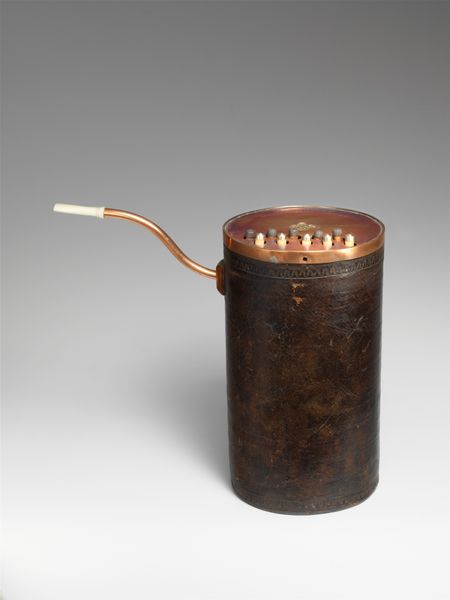 This is J.C. Nienaber's 'Carbidlamp'. Its unassuming form hints at its powerful role in illuminating the darkness, both literally and metaphorically. The lamp's cylindrical body surmounted by a straight pipe evokes a sense of uprightness and forward gaze. Consider how similar vertical shapes--columns, obelisks, spires--have been symbols of strength and enlightenment for centuries. Just as the lighthouse pierces the night, so too does this lamp fight against the darkness, a universal symbol of ignorance and fear. The lamp reminds us that the creation of light is not merely practical but also a deeply psychological act, reflecting our primal need for understanding and clarity. This lamp is more than a tool; it is an assertion of human intellect against the obscurity of the unknown.